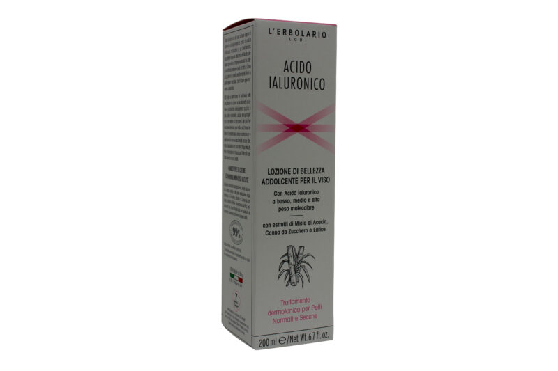Acido Ialuronico a basso, medio e alto peso molecolare, Acqua distillata di Fiordaliso, Estratto di Canna da Zucchero, Estratto di Miele, Lipoproteina da Riso, Polisaccaridi da Larice, Betaina da Barbabietola da zucchero, Complesso idratante cutaneo (NMF).